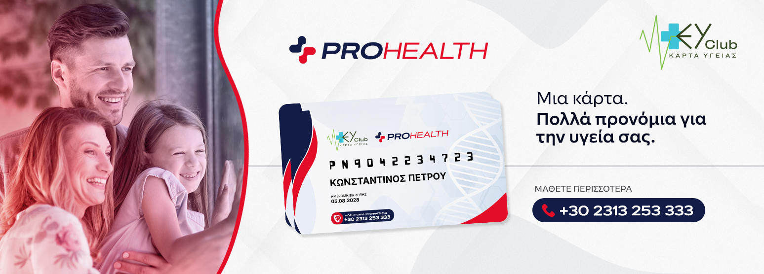 Ενημερωθείτε τώρα για την Κάρτα Υγείας EY Club ProHealth και για το πώς μπορείτε να εξασφαλίσετε προνομιακές τιμές, δωρεάν εξετάσεις και άμεση πρόσβαση σε γιατρούς και ιδιωτικά διαγνωστικά κέντρα σε όλη την Ελλάδα.